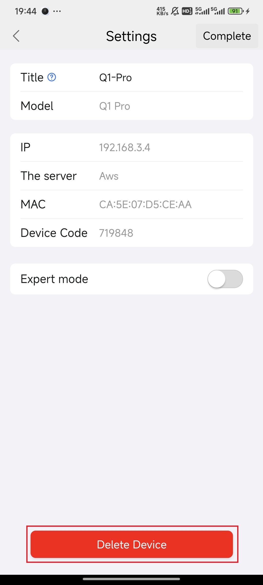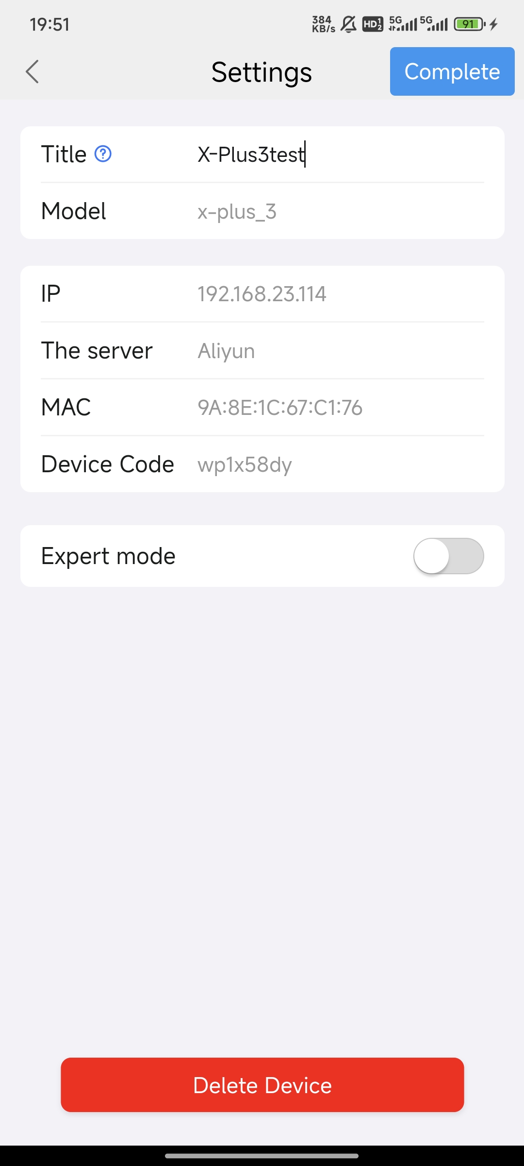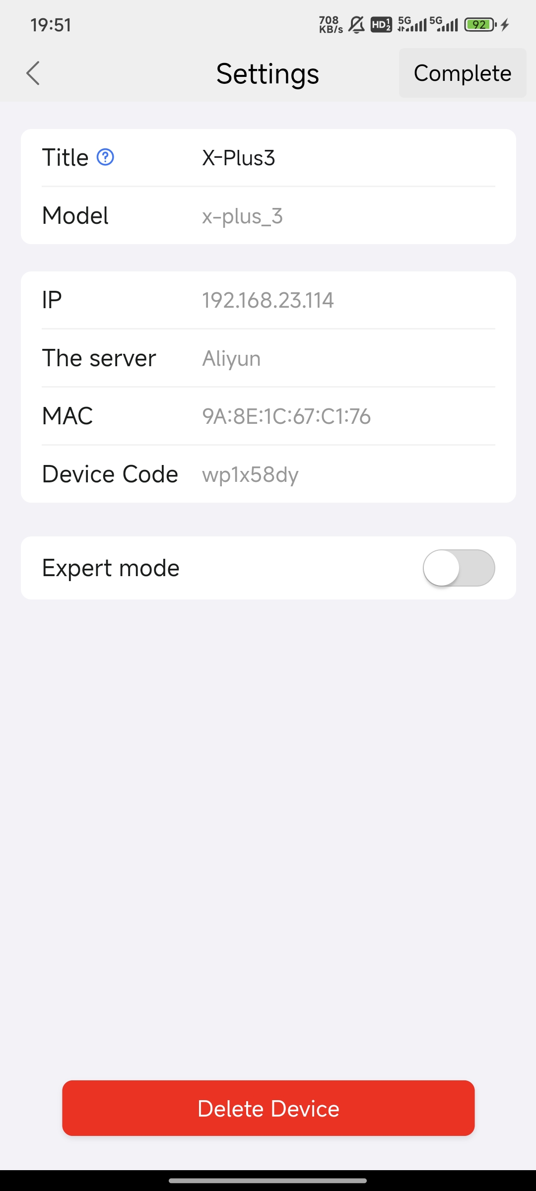 Expert mode enables Fluidd control.