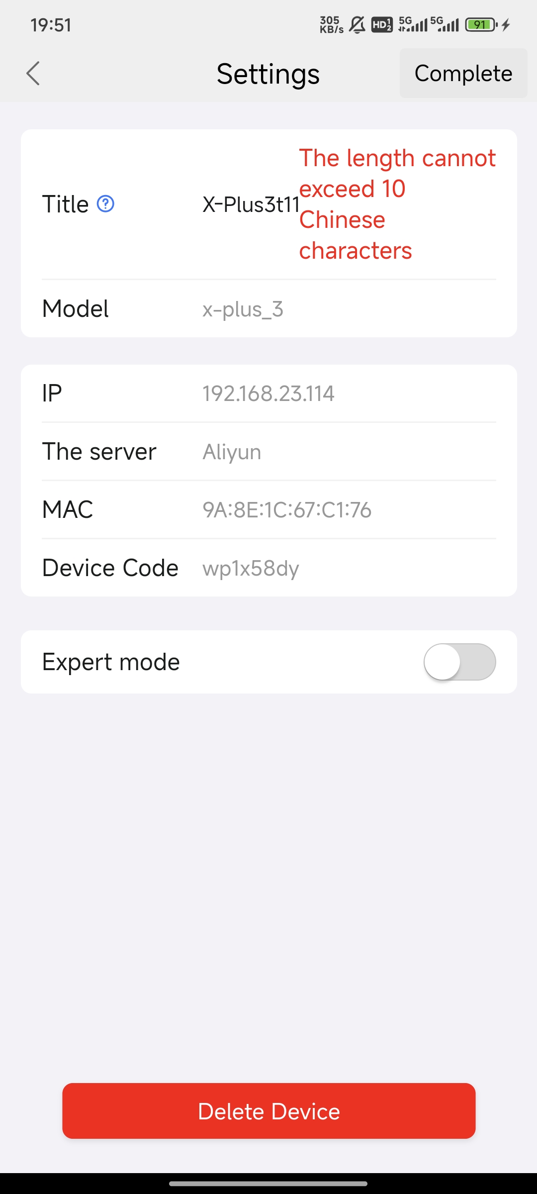 Note: Device names are limited to 30 characters.