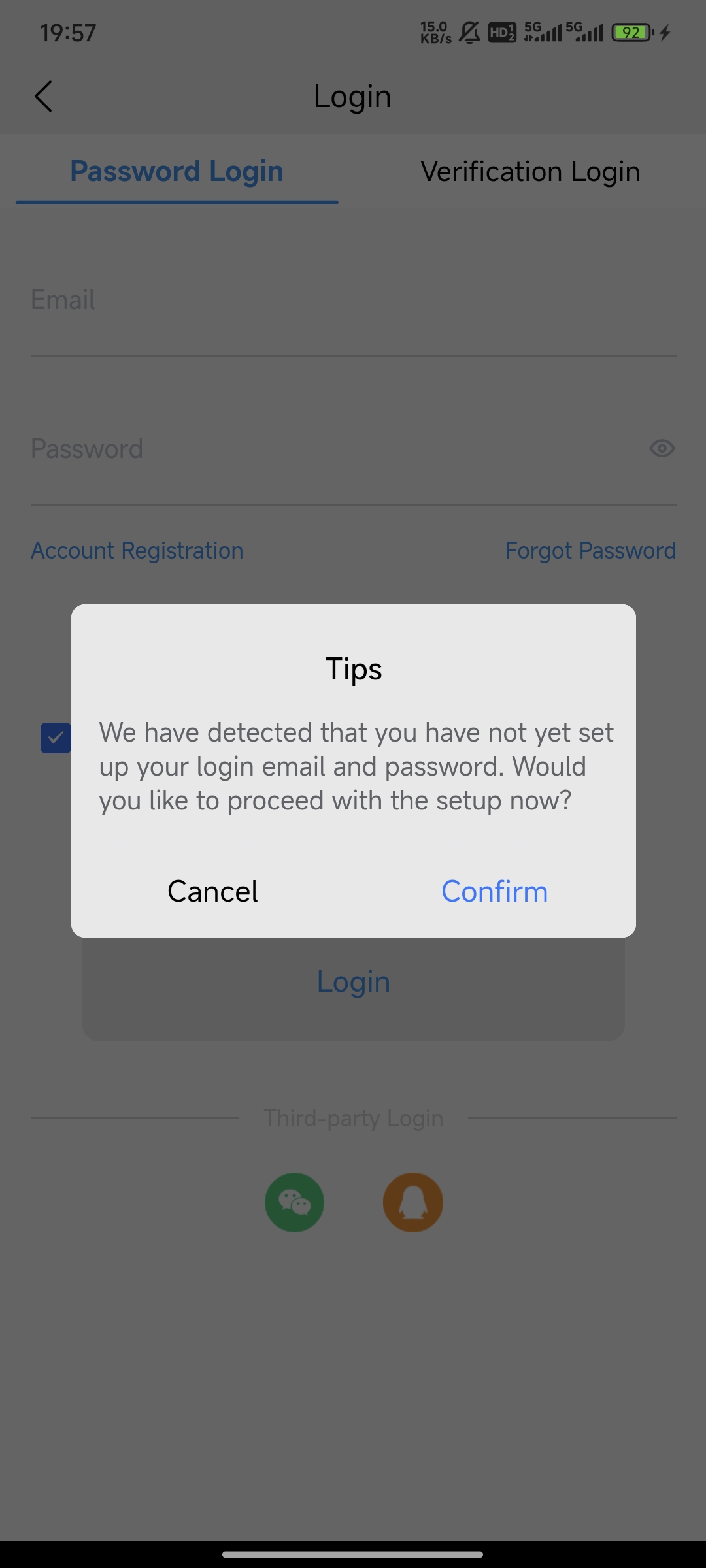 Third-party login availability depends on region: