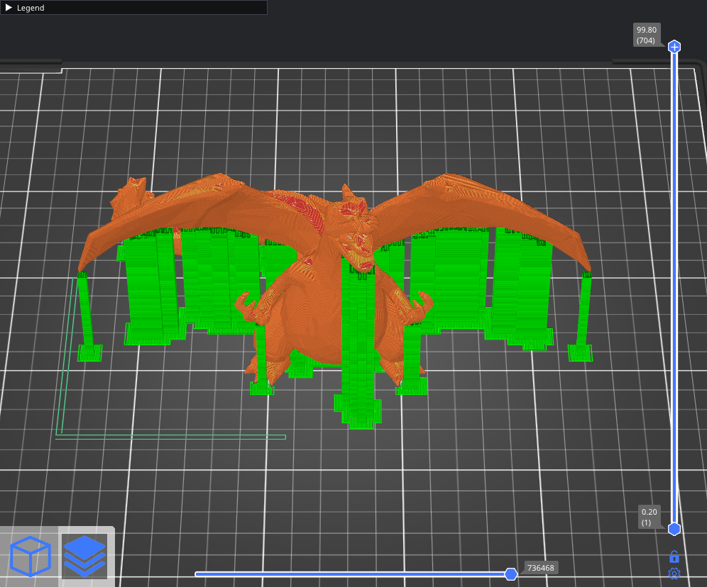 Supports can be generated both from the print bed and from the surfaces of the model itself as needed. This ensures that all overhangs and parts of the model suspended in mid-air are supported. However, small imperfections might appear on the surface where the supports originated.