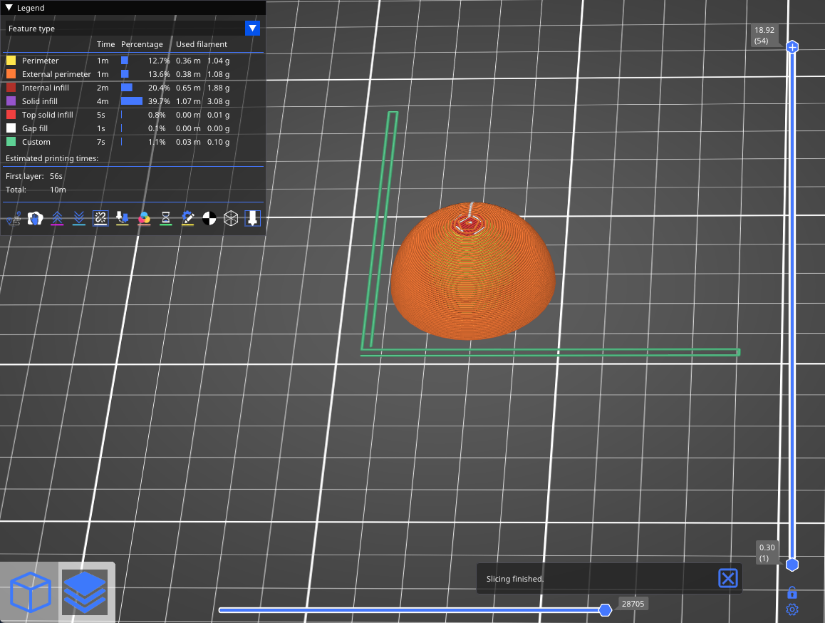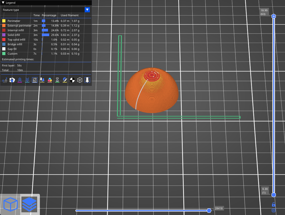 Right mouse button: Increased layer height (reduced detail)