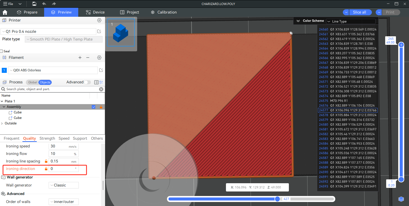 Choose the right ironing Settings to get a smooth surface, otherwise the effect may be worse, such as over extrusion, surface smoothness is inconsistent, etc.