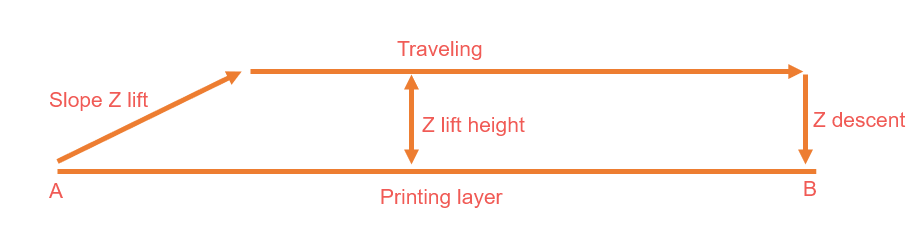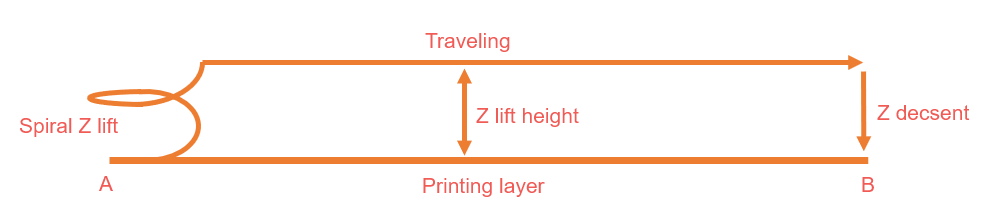 The following are several ways to lift the nozzle after retraction is complete, using slope, spiral, and auto lift can effectively reduce oozing and stringing.