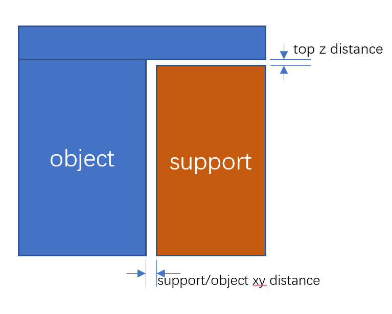 The XY distance between the support and the object and the top Z distance from the support top to the object are shown below.