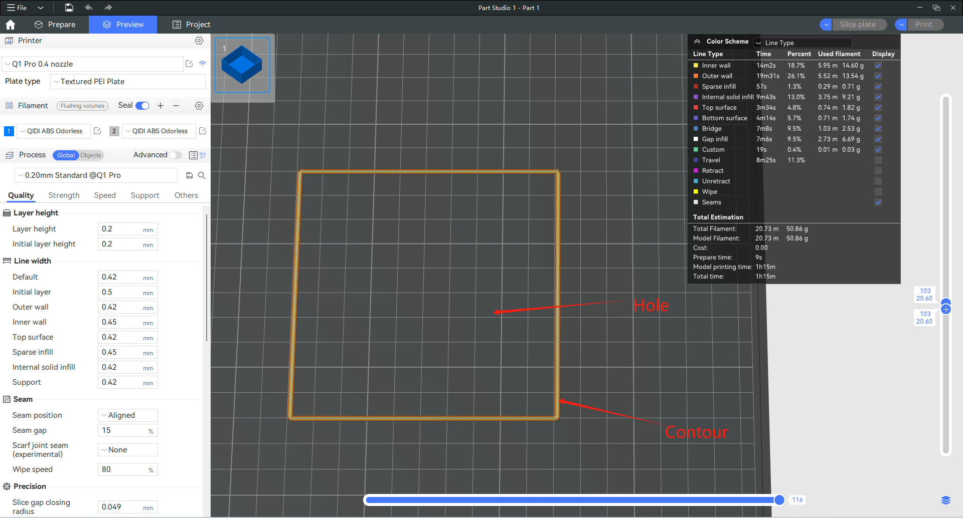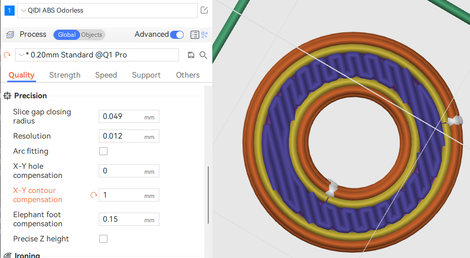 When you print some parts that need to be assembled, sometimes the size of the parts printed will be incorrect because of factors such as the shrinkage of the material, so the parts can not fit well. The XY hole/contour compensation function in QIDI Studio can properly compensate for the gaps caused by errors. You can enable this feature in Process - Quality: