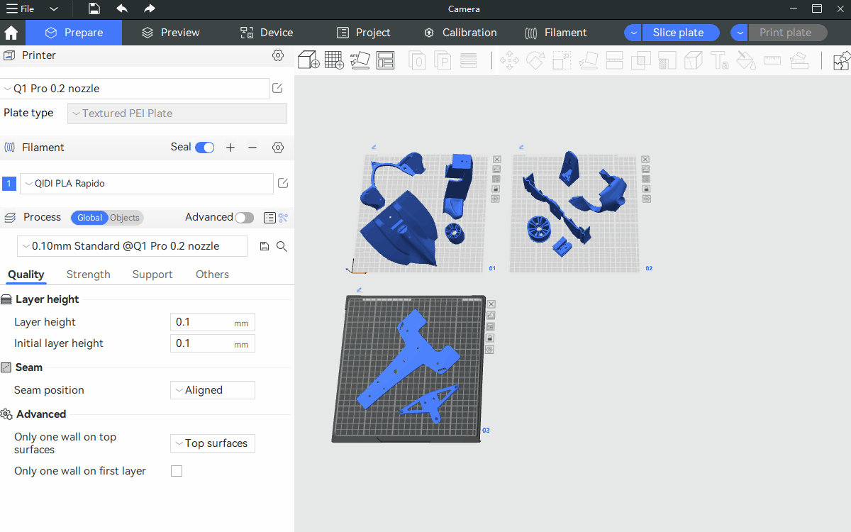 A Plate is a container that holds the models, which refers to a slicing and print unit in QIDI Studio. You can create lots of plates in QIDI Studio.