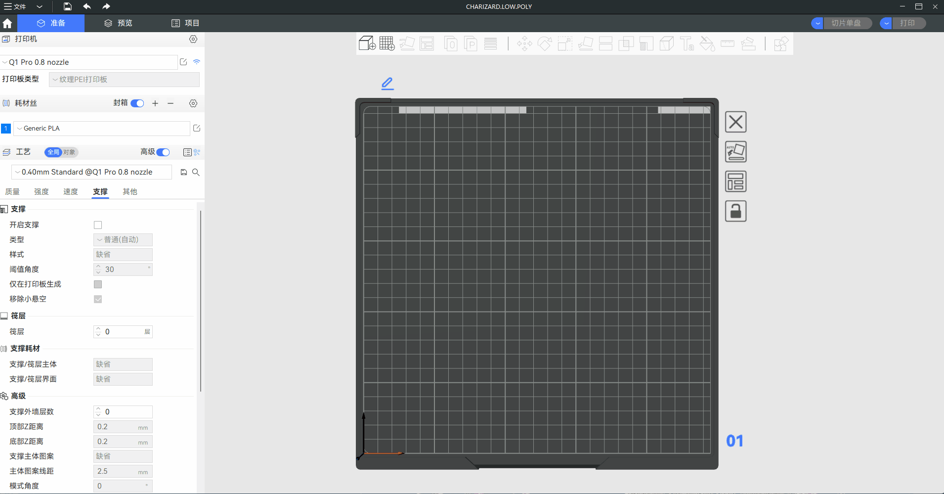 您可以在此处选择耗材丝的类型。
