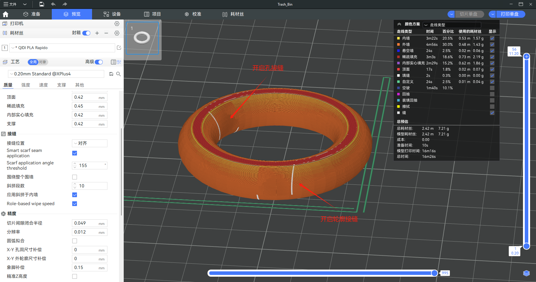 大部分情况下,它可以减弱接缝的明显程度,减弱打印件起始部分的凸起。