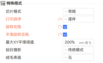 如果您希望在一个印版中使用“螺旋花瓶”模式同时打印多个对象,请选择“逐件”打印顺序。