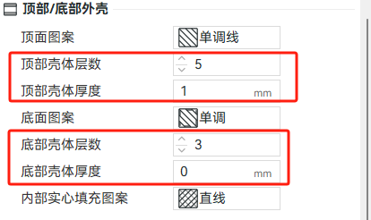 该参数用于在斜面表面附近添加实心填充,以保证垂直外壳厚度(顶部+底部实心填充)。需要保证的垂直外壳厚度取决于设置的顶面壳体厚度(层数)和底面壳体厚度(层数)。