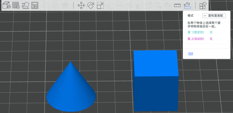- 中心重合:将两个面连接在一起以组装对象。