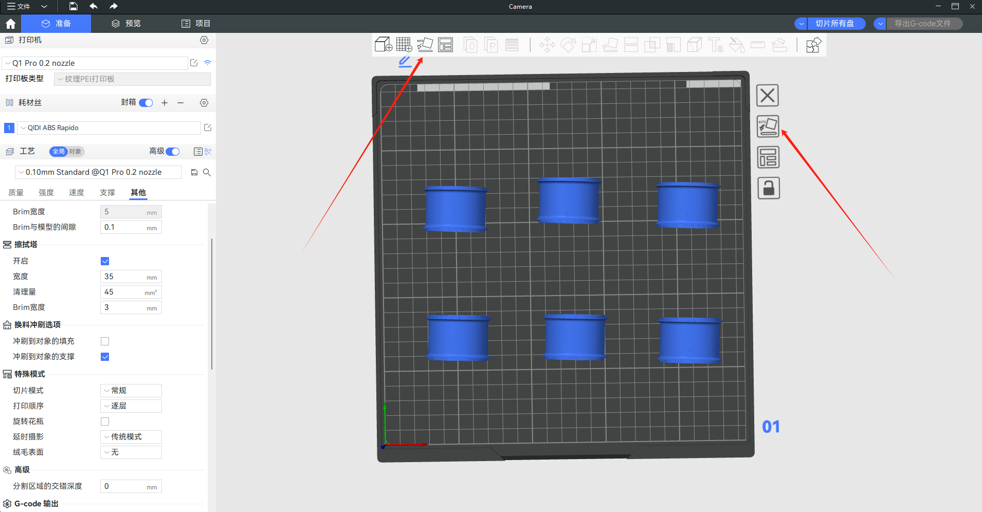 - 不选择任何对象,然后单击顶部工具栏的“自动朝向”按钮,所有盘内的对象都将自动调整朝向。