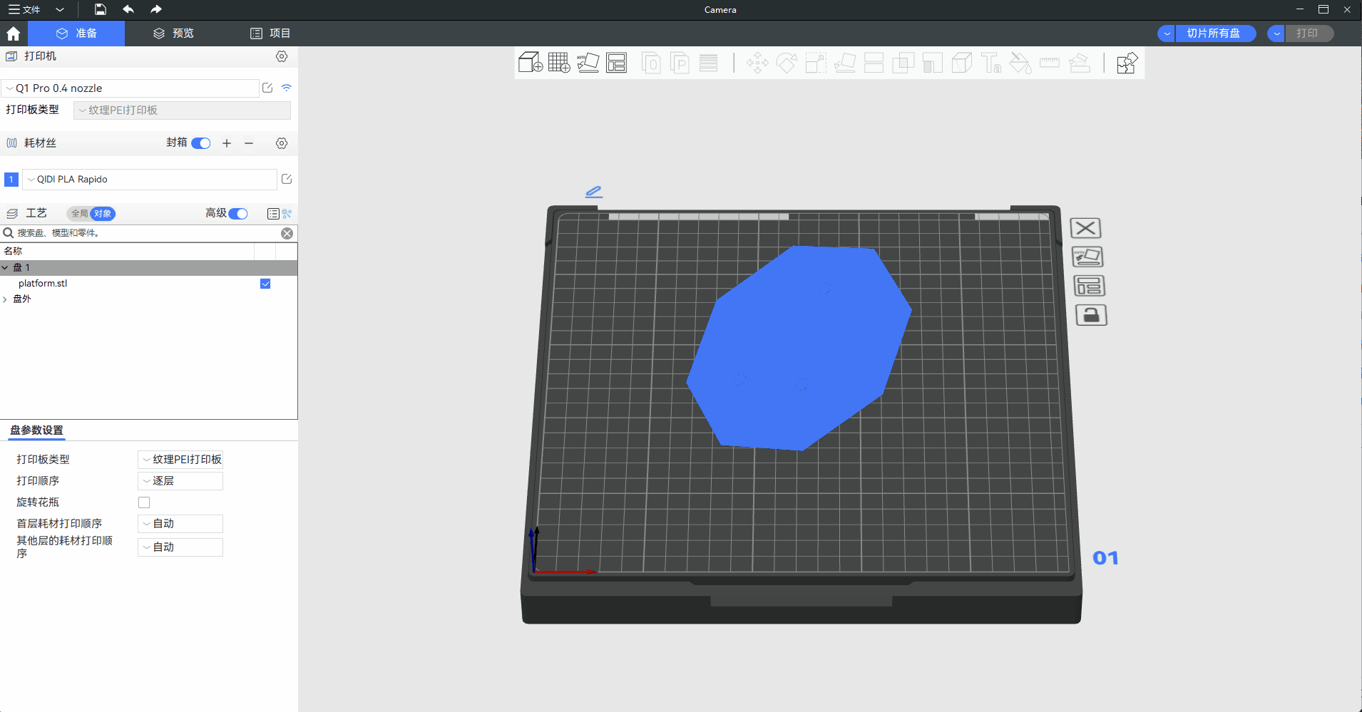 QIDI Studio提供“选择底面”工具,可用于调整模型的底面。