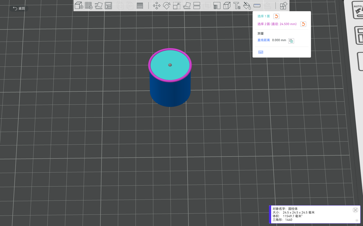 您可以使用测量工具测量多个对象之间的距离或角度。也可以对同一个对象不同的点、面、线进行测量。
