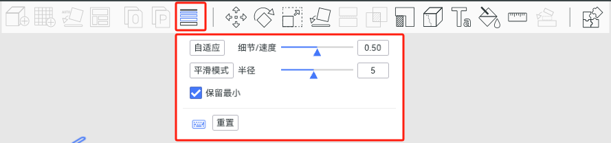 单击将使不同层之间的过渡平滑。半径是指高斯滤波器的宽度。较大的过滤器半径将使曲线更平滑,您可以多次单击以获得平滑的曲线效果,从而在不同层高之间实现更好的过渡。